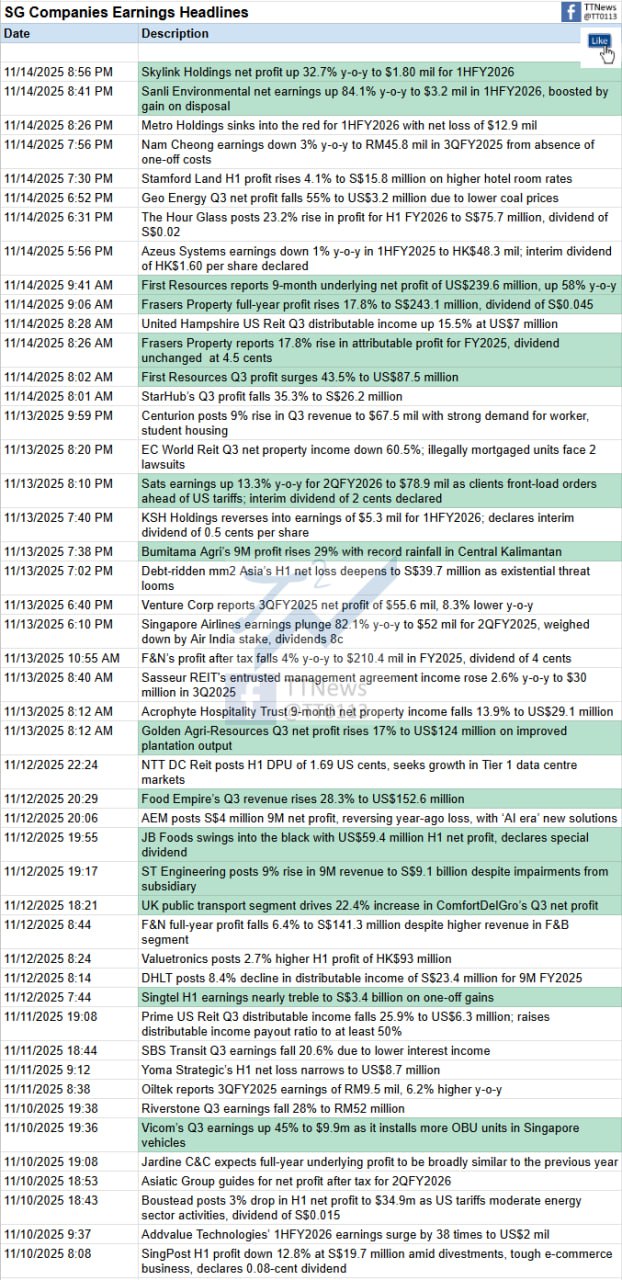 SG Companies Earnings Headlines #TTNews 1 min read to save time More here: https://linktr.ee/ttnews0113 #stocks #earnings