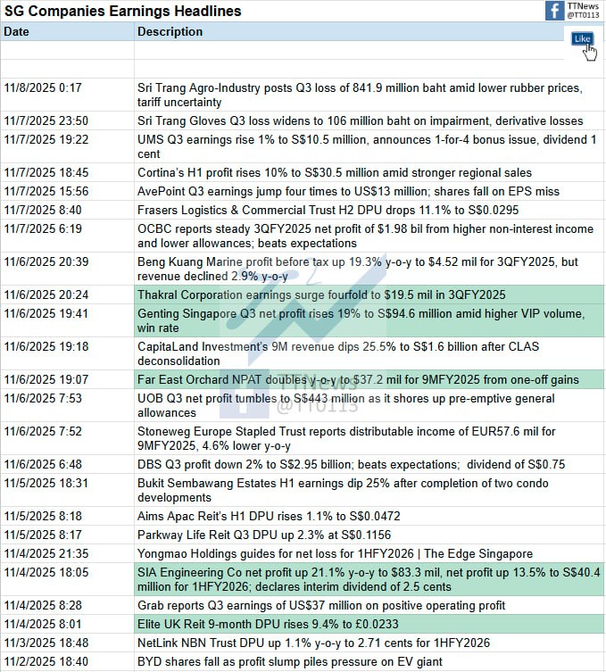 SG Companies Earnings Headlines #TTNews 1 min read to save time More here: https://linktr.ee/ttnews0113 #stocks #earnings
